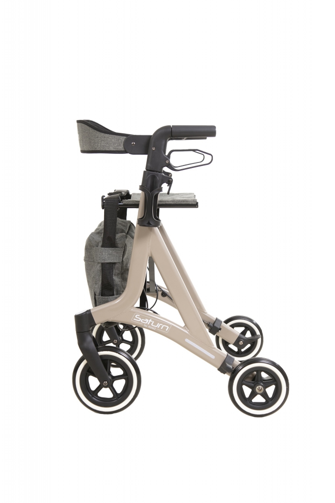 De Saturn rollator is een lichtgewicht design rollator met een moderne uitstraling. Door de extra zachte wielen kan zowel binnen als buiten comfortabel over iedere ondergrond gereden worden. De rollator is eenvoudig zijwaarts op te klappen waardoor deze weinig ruimte in beslag neemt.