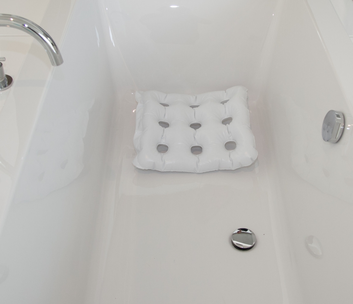 Dit opblaasbaar zitkussen biedt comfort tijdens het baden. Vier zuignappen houden het kussen op zijn plaats.