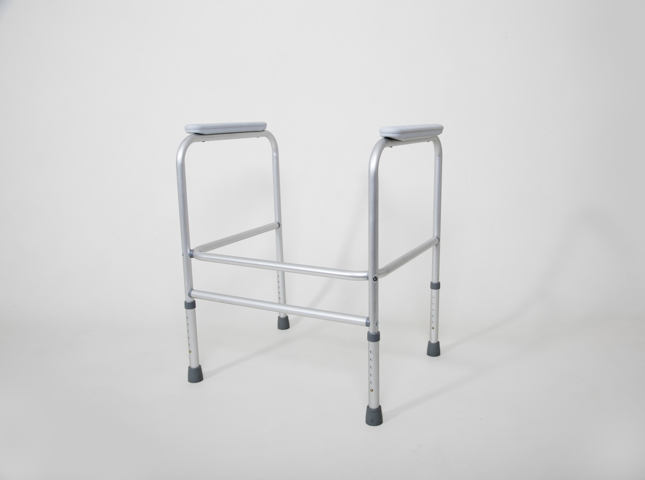 In hoogte verstelbaar aluminium frame met comfortabele armsteunen. Voorzien van anti-slip
