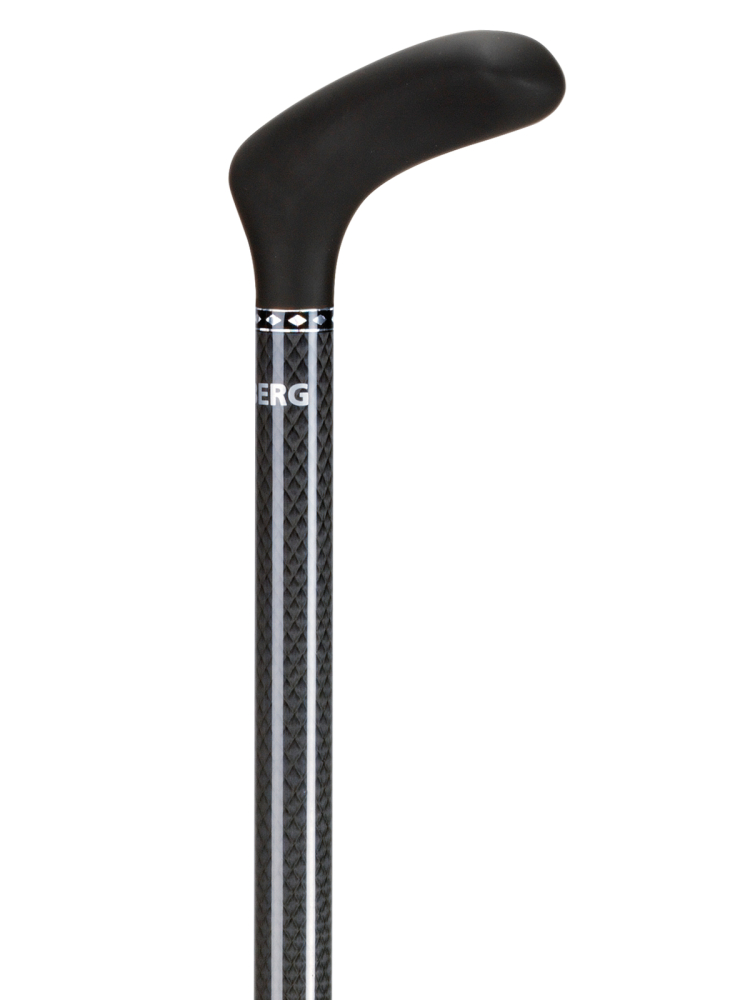 Carbon wandelstokken zijn ultralicht, sterk en ondersteunen veilig en betrouwbaar het lichaamsgewicht. Deze opvouwbare wandelstok heeft een glanzend zwart ruitpatroon en een mat zwart soft-touch handvat. Het handvat is ergonomisch gevormd en geschikt voor zowel de linker- als de rechterhand. Het handvat heeft een bolle vorm en een breed contactoppervlak, wat een prettige greep geeft en ontlastend is voor de pols.