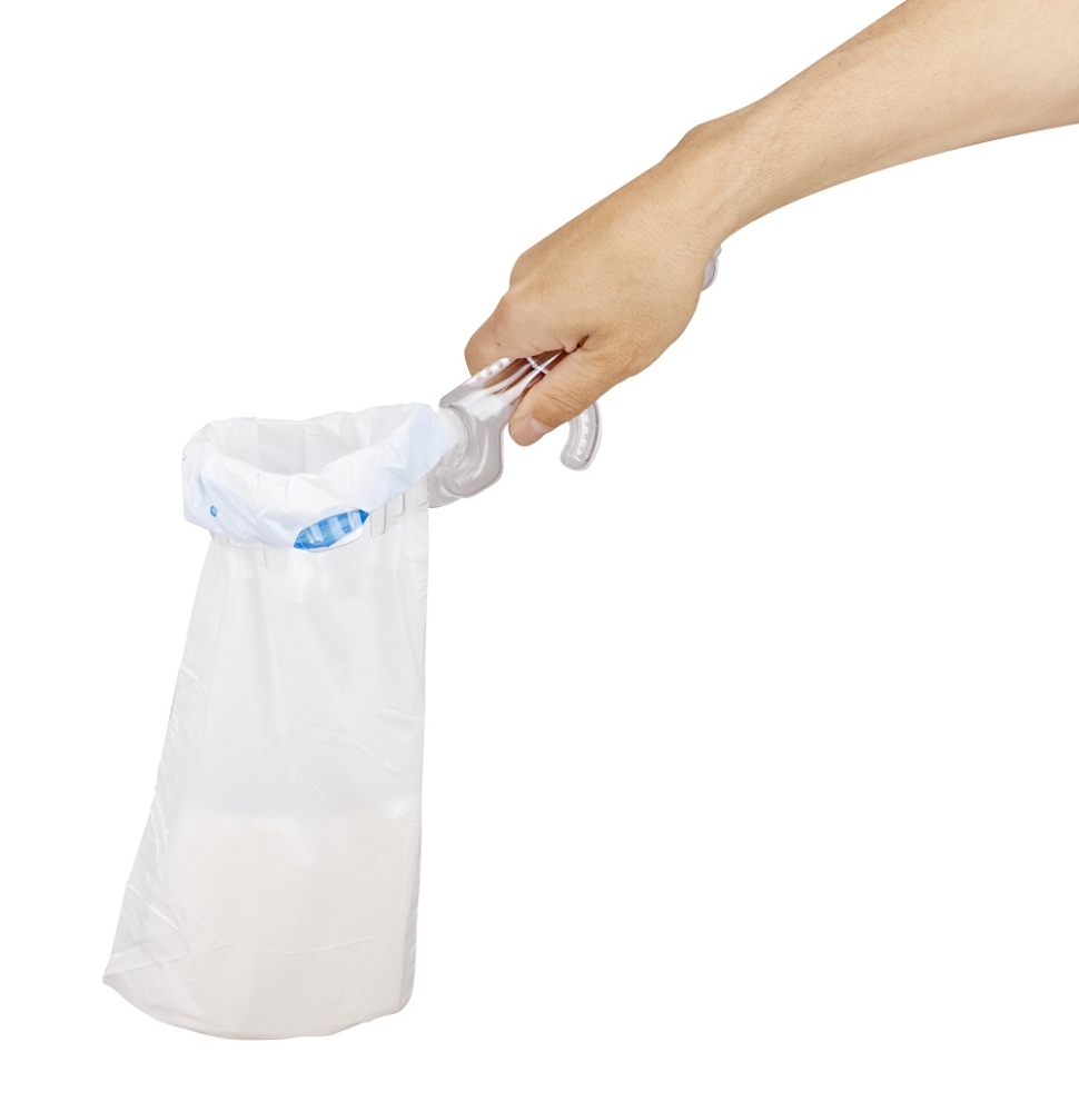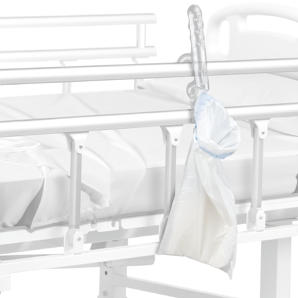 De houder is uitgerust met een handvat die het vasthouden van de opvangzak vergemakkelijkt, zowel voor de gebruiker als voor de zorgverlener die hem of haar helpt. Het handvat zorgt er bovendien voor dat de opvangzakhouder aan het bed van de gebruiker gehangen kan worden. Door het gebruik van de houder wordt spatten op de handen voorkomen, wat helpt om het risico op infecties te verminderen. De ergonomische houder kan worden gebruikt door zowel mannen als vrouwen.