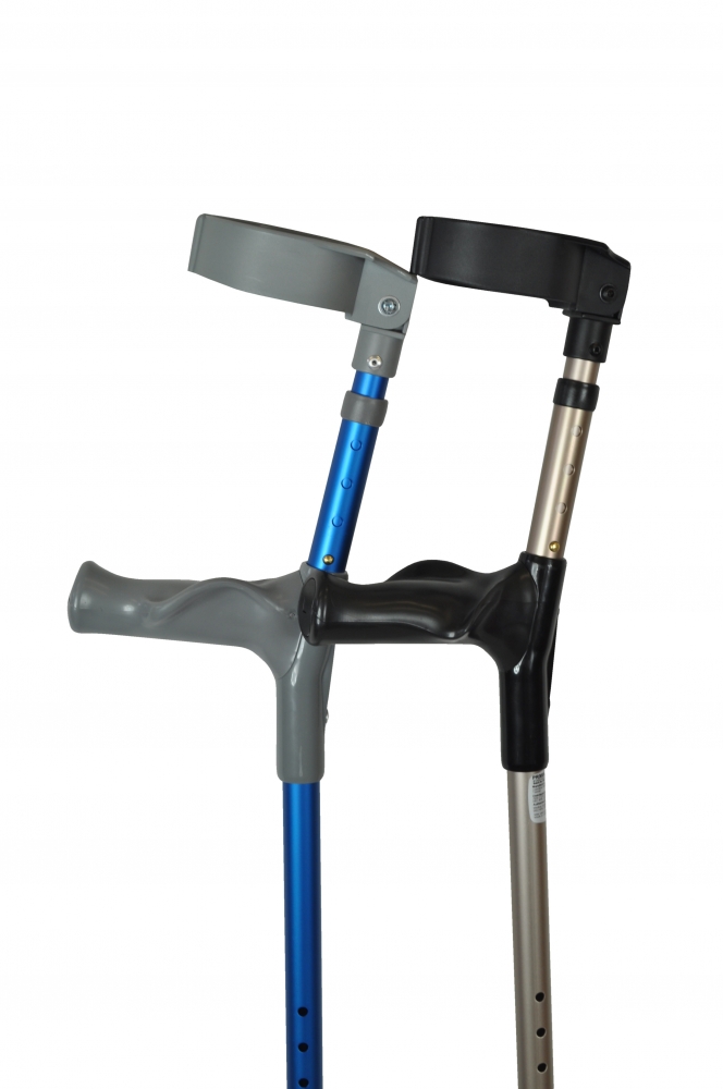 Deze onderarmkrukken hebben een comfortabele anatomische greep. De krukken bieden steun aan de handpalm en verspreiden de druk. De kruk en de armsteun zijn afzonderlijk in hoogte te verstellen.
