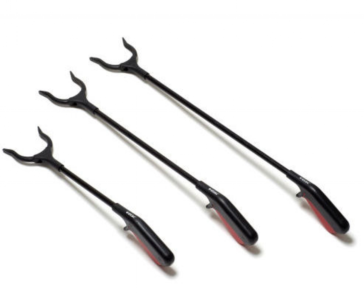 De Etac Aktiv grijpers vergemakkelijken het reiken en grijpen voor mensen met een verminderde arm- en handfunctie, dankzij hun lichtgewicht en ergonomisch ontworpen handgrepen. De klem kan zowel een grote ruimte omspannen als het kleinste voorwerp pakken. Alle modellen hebben een handgreep met magneet waarmee u kleine metalen voorwerpen kunt oprapen. De gebogen handgreep benut de kracht in de hand en zorgt voor een effectieve grip. De wijsvingersteun op de handgreep zorgt voor extra precisie. Het hele oppervlak van de grijparm is voorzien van een duurzame rubberen coating die voldoende stroefheid garandeert, waardoor minder kracht nodig is. De grijparmen kunnen in twee standen worden gezet. Hierdoor kan hij zowel horizontaal als verticaal worden gebruikt.