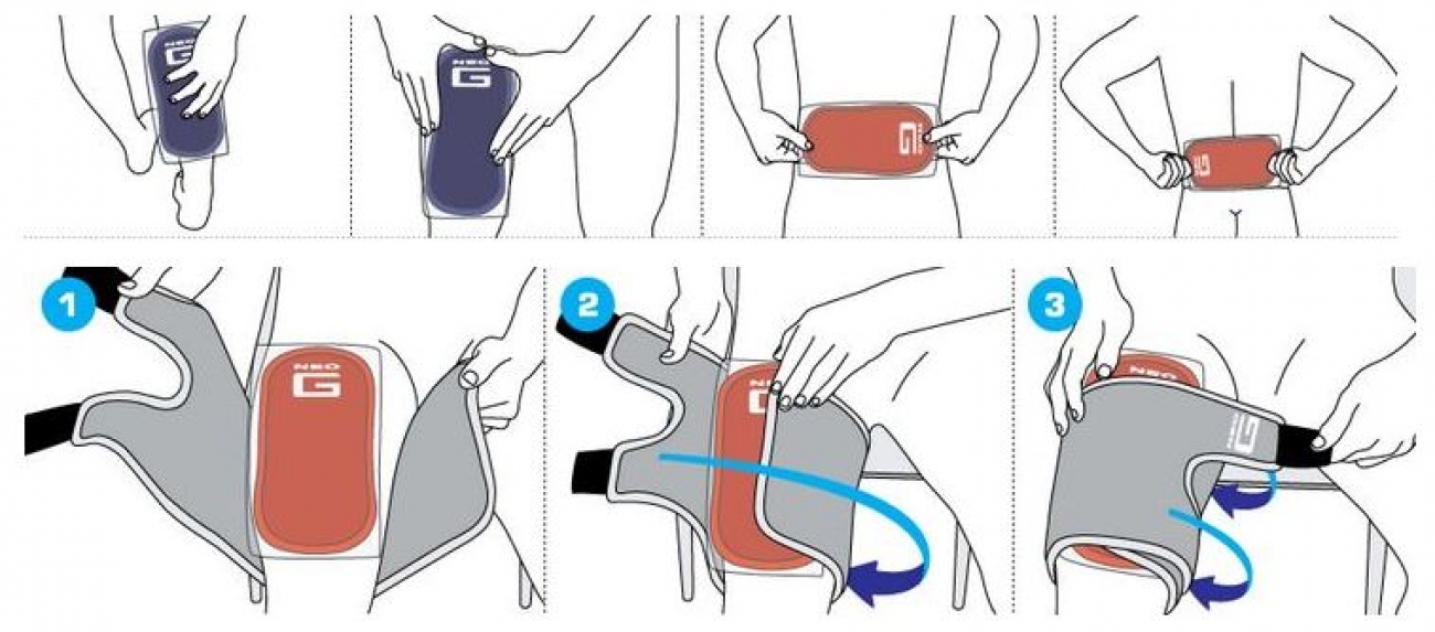 Koelen: leg het kompres ongeveer 90 minuten in de diepvries. Plaats het kompres voor gebruik in de beschermhoes.