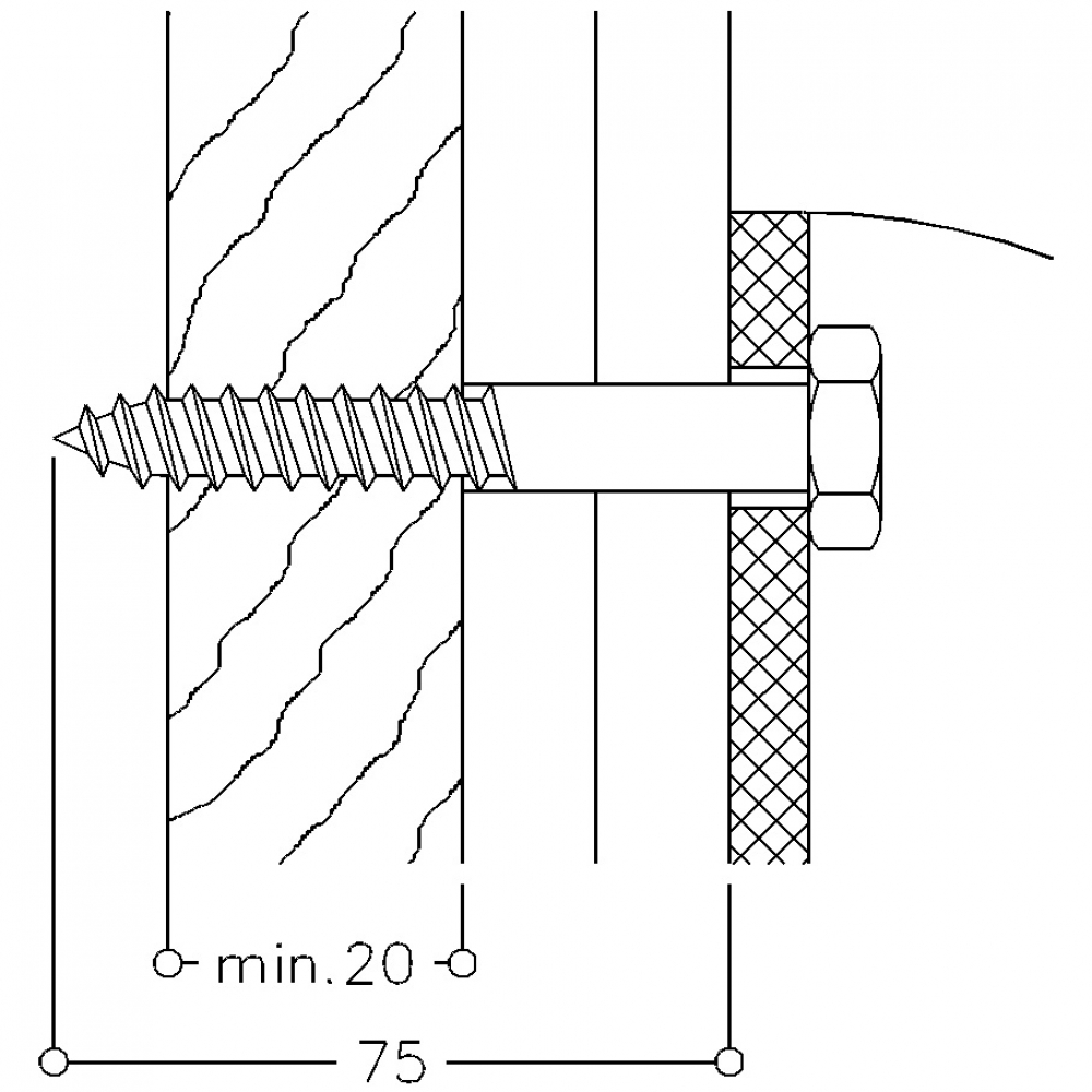 Deze montageset is geschikt voor bevestiging aan houten wanden welke ruim voldoende verstevigd zijn. Voor andere soort wanden dienen montagesets gebruikt te worden die aangepast zijn aan het soort wand.