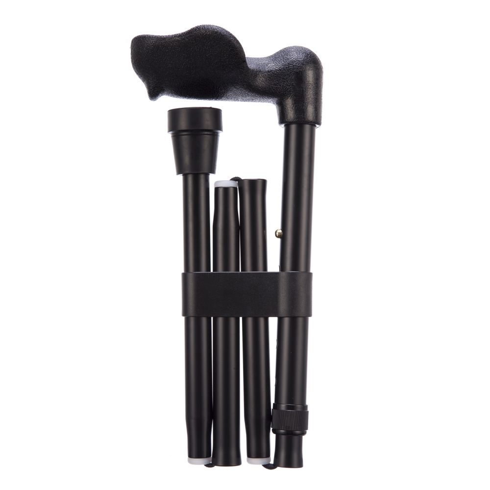Opvouwbare aluminium wandelstok met groot anatomisch voorgevormd handvat voor ondersteuning van de handpalm. Geschikt voor reumatische klachten. Eenvoudig op te vouwen en op te bergen in bijgeleverde plastic hoes. Inclusief plastic clip.