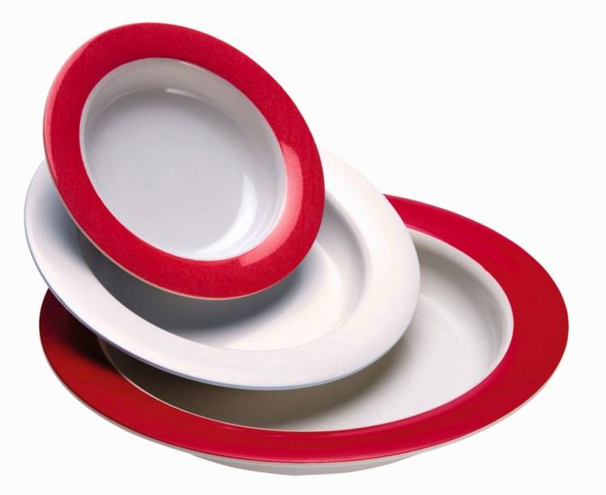 – Een schuin aflopende bodem zodat u het bord niet op hoeft te tillen bij het eten van soep.