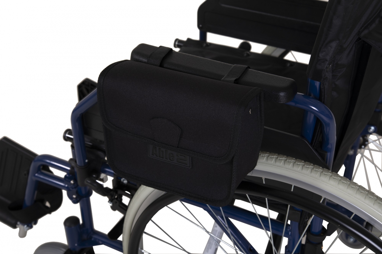 De Splash rolstoelarmleuningtas plaatst u over de armleuning van uw rolstoel. Te bevestigen met klittenband. Ideaal voor het opbergen van uw portemonnee, telefoon en sleutels. De tas heeft één hoofdvak en sluit af met een stevige klittenbandsluiting. Gemaakt van verstevigd polyester. Kleur zwart.