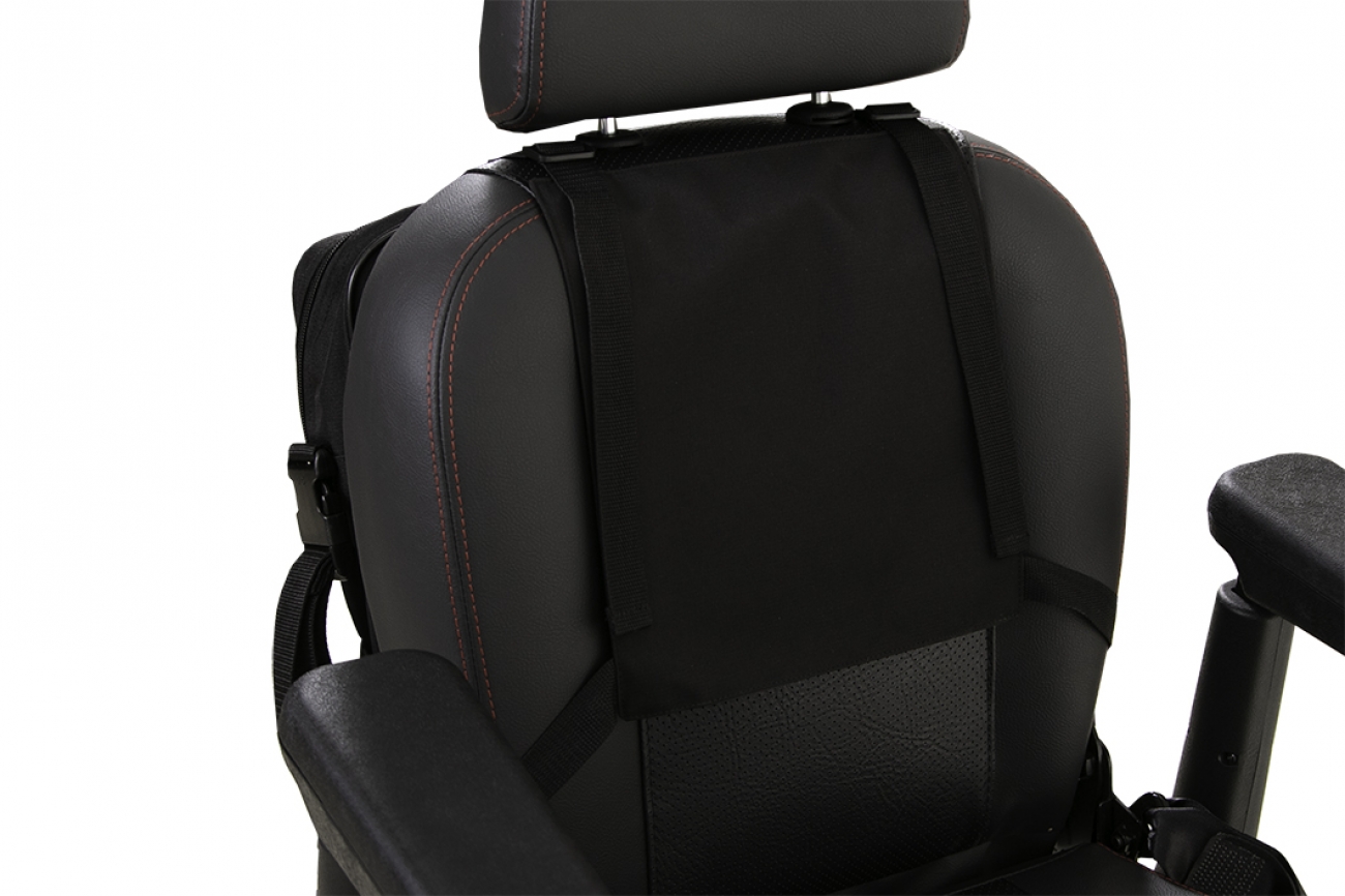 Te bevestigen over de leuning van de rolstoel of scootmobiel door een extra gedeelte over de rugleuning te plaatsen. Aanpasbaar door de verstelbare bandjes met kliksysteem.