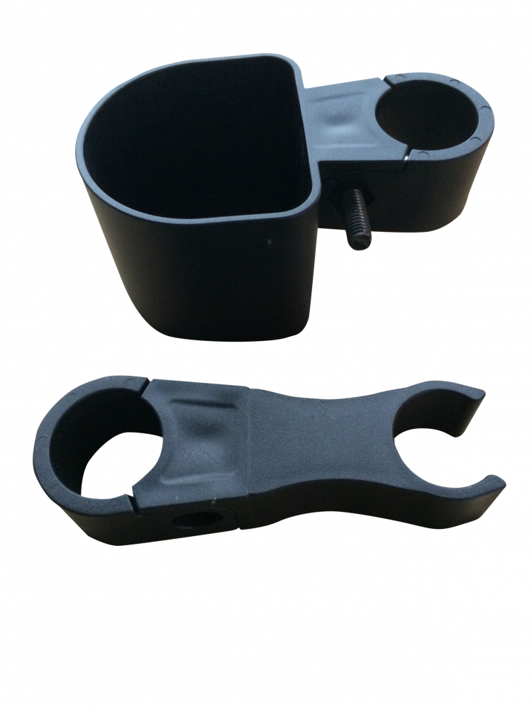 Stok- en krukhouder compleet met bevestigingsschroeven. Door de houder kunnen wandelstok of kruk eenvouding meegenomen worden. Past op de meeste rollators met een frame van ronde buizen.