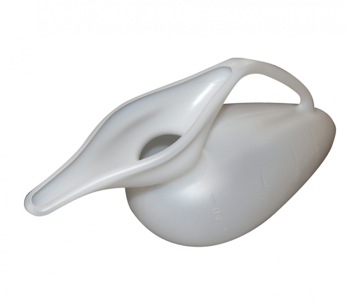 Speciale urinaal voor vrouwen met comfortabel gevormde opening. Gemaakt van helder kunststof. Eenvoudig te legen.