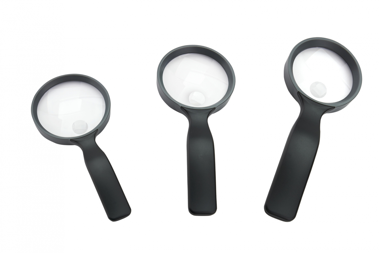Lichtgewicht ronde vergrootglazen met een heldere acryl lens.
