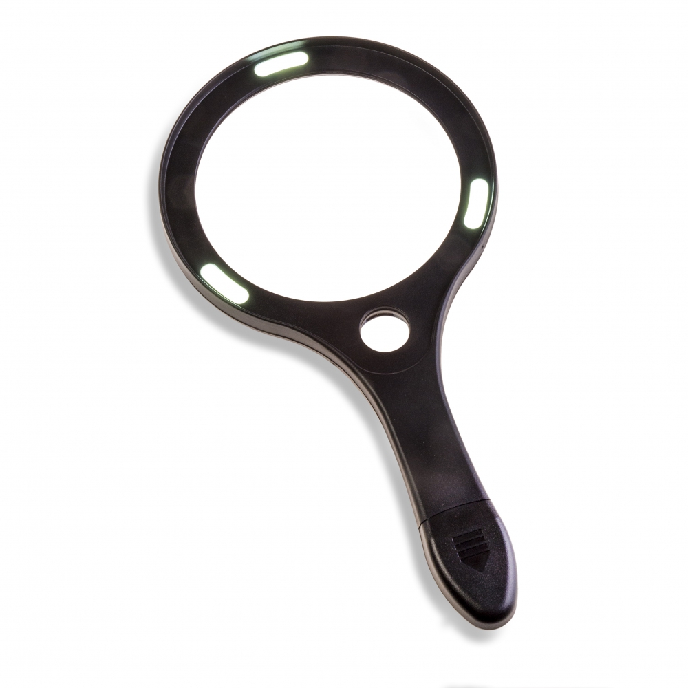 Rond vergrootglas met ultra heldere ledverlichting. Beschikt over 3 COB-LEDS met diffuse afdeklenzen die het licht mengen en gelijkmatig verdelen. COB-LEDS zijn helderder dan traditionele LEDS en verbruiken minder stroom. Het vergrootglas heeft een schakelaar met 2 helderheidsstanden en gebruikt 2 AAA-batterijen (batterijen niet inbegrepen).
