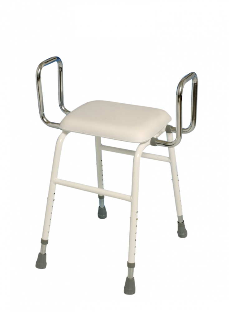 Deze veelzijdige zitkruk kan op 4 manieren gebruikt worden. Als zitkruk, zitkruk met rugleuning, zitkruk met armleuningen en compleet met arm- en rugleuning. Is gemaakt van plastic gecoate stalen buizen.